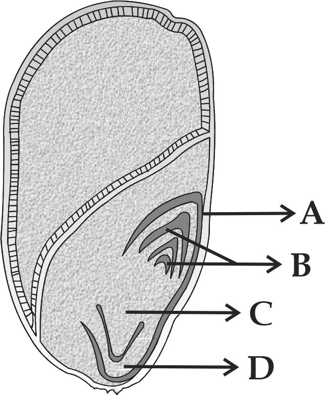 | D. | Perisperm | IV. | Rudimentary cotyledon |