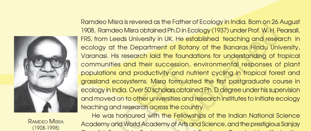 Who is known as the father of Ecology in India?