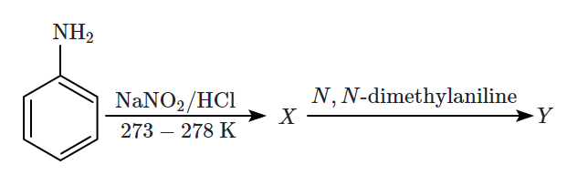 Aniline gives a set of the following reactions that yielded a coloured product 'Y':