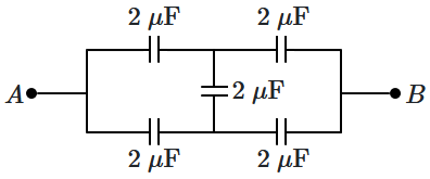 In the following circuit, the equivalent capacitance between terminal and terminal is:
