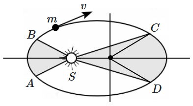 The figure shows the elliptical orbit of a planet about the sun The shaded area is twice the shaded area If is the time for the planet to move from to and is the time to move from to then: