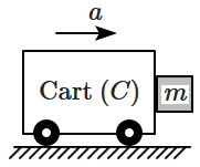 The coefficient of static friction between the block and the cart is The acceleration of the cart that will prevent the block from falling satisfies: