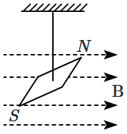 A bar magnet having a magnetic moment of JT-1 is free to rotate in a horizontal plane. A horizontal magnetic field T exists in the space. The work done in taking the magnet slowly from a direction parallel to the field to a direction from the field is: