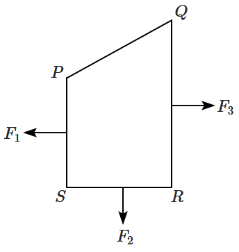 A closed-loop carrying a current is placed in a uniform magnetic field. If the magnetic forces on segments and are respectively, and are in the plane of the paper and along the directions shown, then which of the following forces acts on the segment