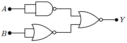 In the combination of the following gates, the output can be written in terms of inputs and as: