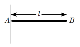 A uniform rodΒ Β of length and mass is free to rotate about pointΒ .Β The rod is released from rest in the horizontal position. Given that the moment of inertia of the rod aboutΒ Β is theΒ initial angular acceleration of the rod will be:Β