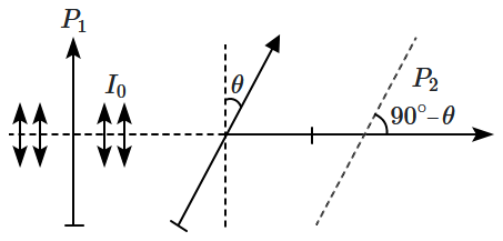 Two polaroids and are placed with their axis perpendicular to each other. Unpolarised light of intensity is incident on . A third polaroid is kept in between and such that its axis makes an angle with that of . The intensity of transmitted light through is: