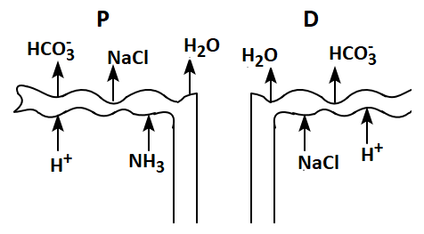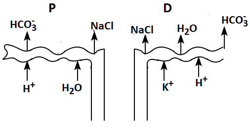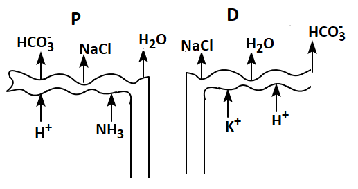 Which of the following diagrams is correct with regard to the proximal (P) and distal (D) tubule of the Nephron.